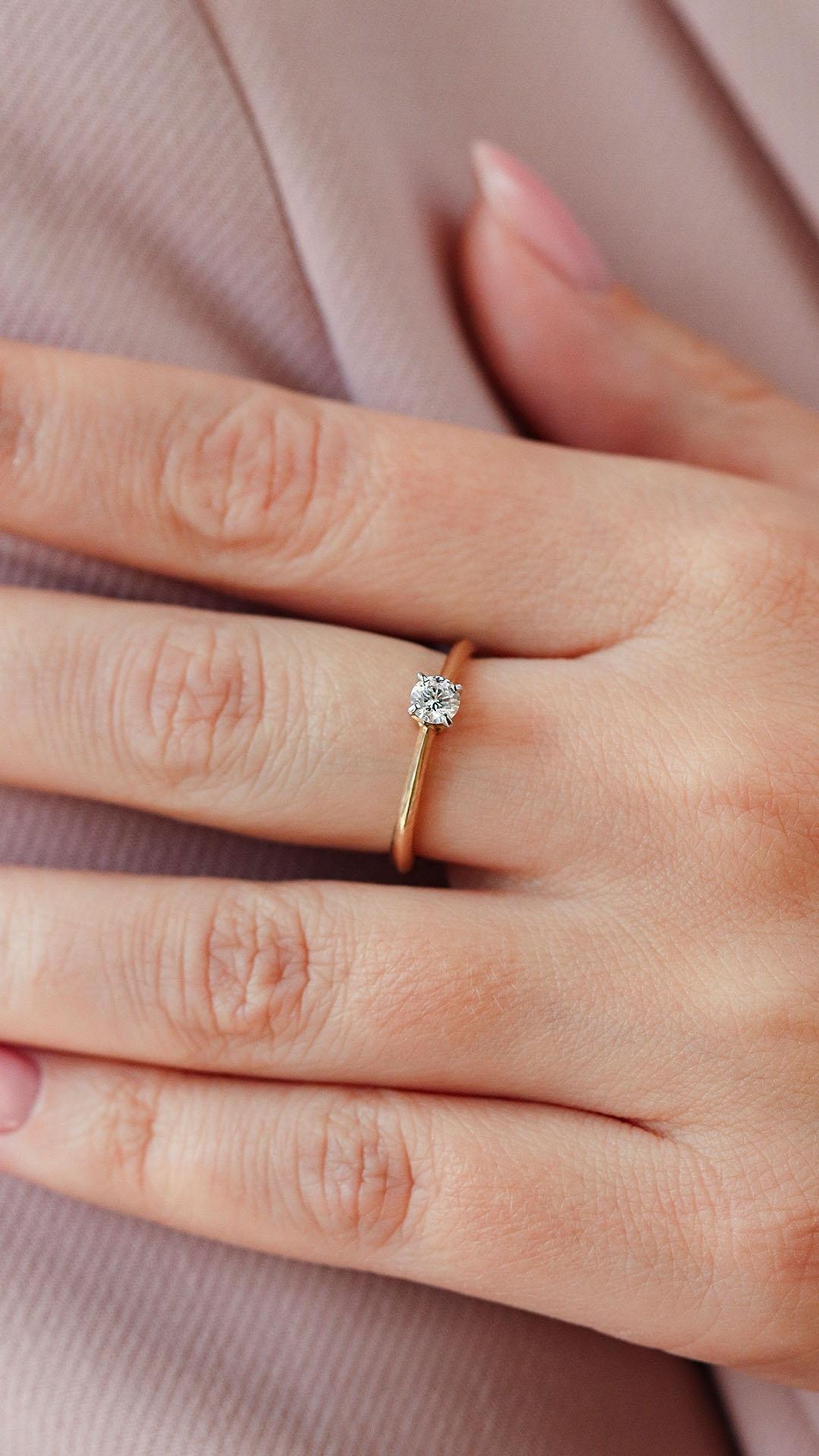 Klasyczny pierścionek zaręczynowy z kamieniem, osadzony w czterech łapkach, zapewnia stabilność i wygodę. Ręcznie wykonany w polskiej pracowni z najwyższą starannością.