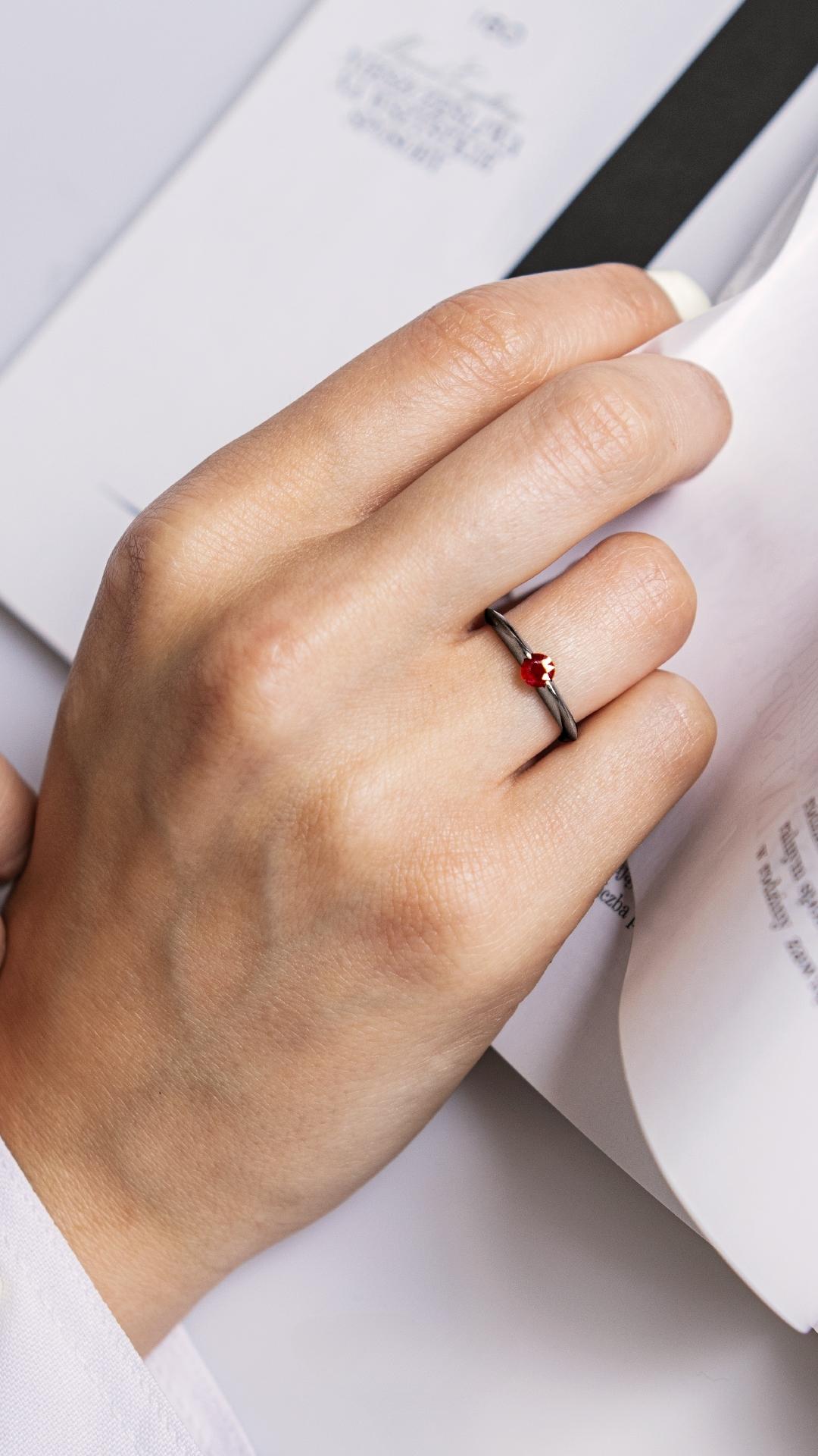 Pierścionek zaręczynowy My Baby z czarnego złota z rubinem 0,50ct