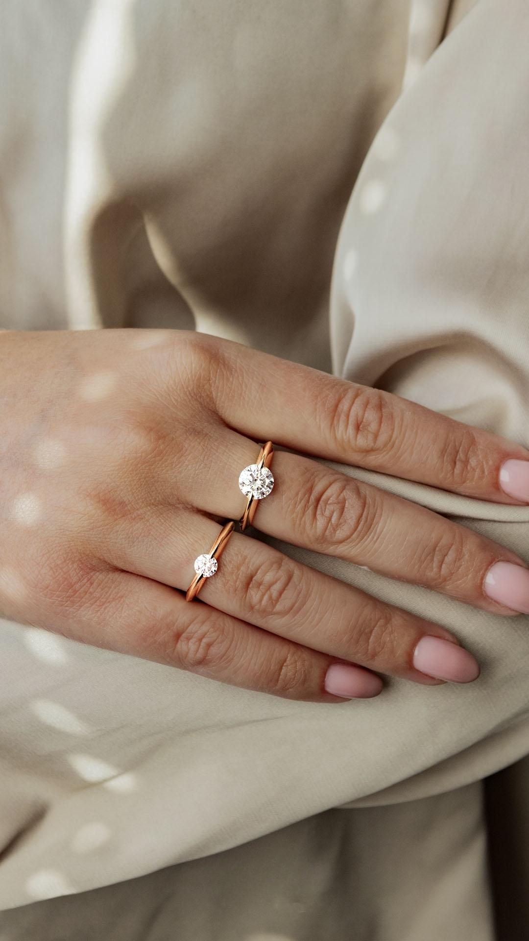 Nowoczesny pierścionek zaręczynowy z centralnym kamieniem w odsłoniętej, niskiej oprawie – lekkość formy i wyrazistość w jednym. Projekt który mówi: ”jesteś wyjątkowa”.
