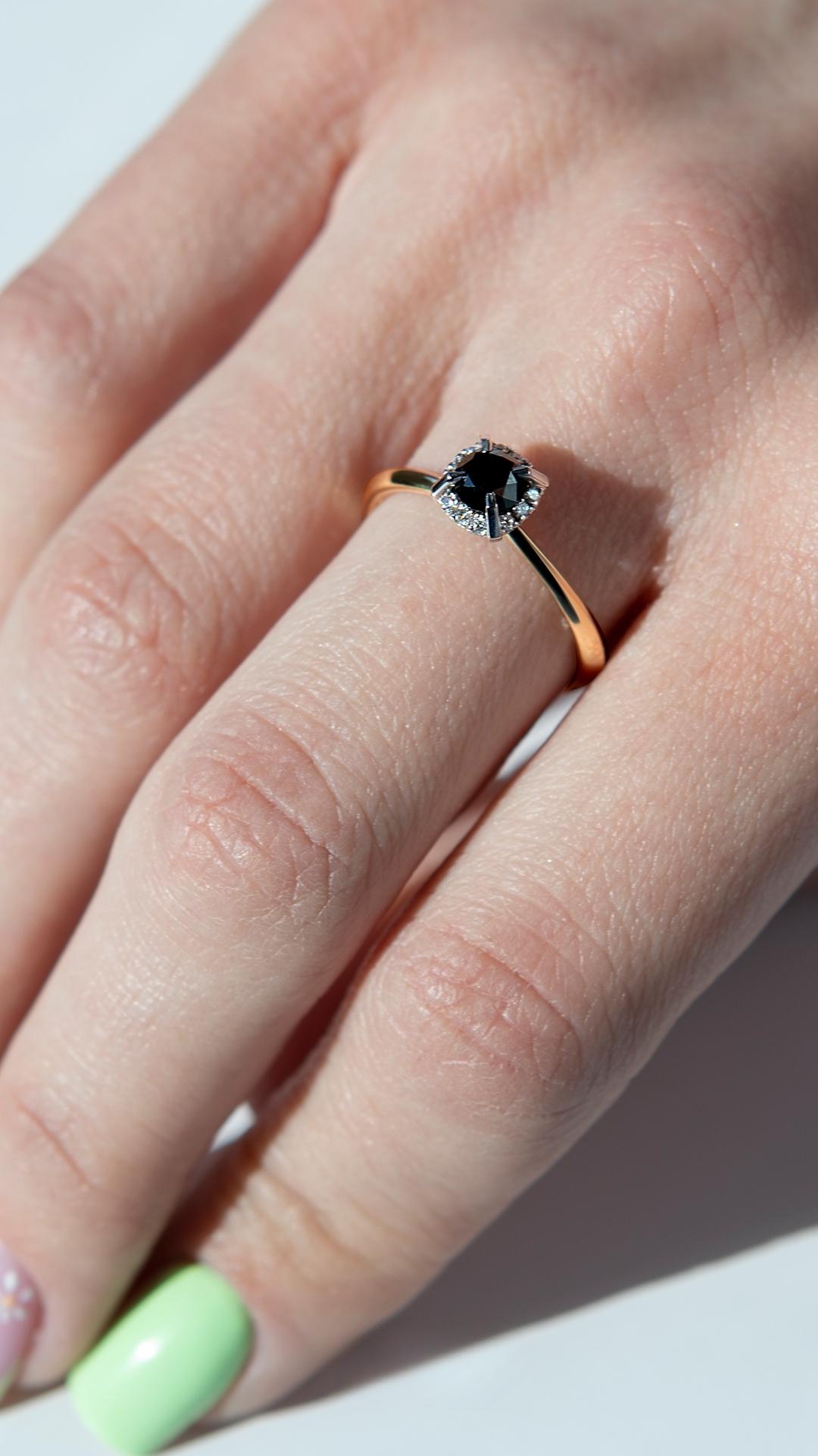 Pierścionek zaręczynowy My Beauty z żółtego złota z czarnym diamentem 0,33ct