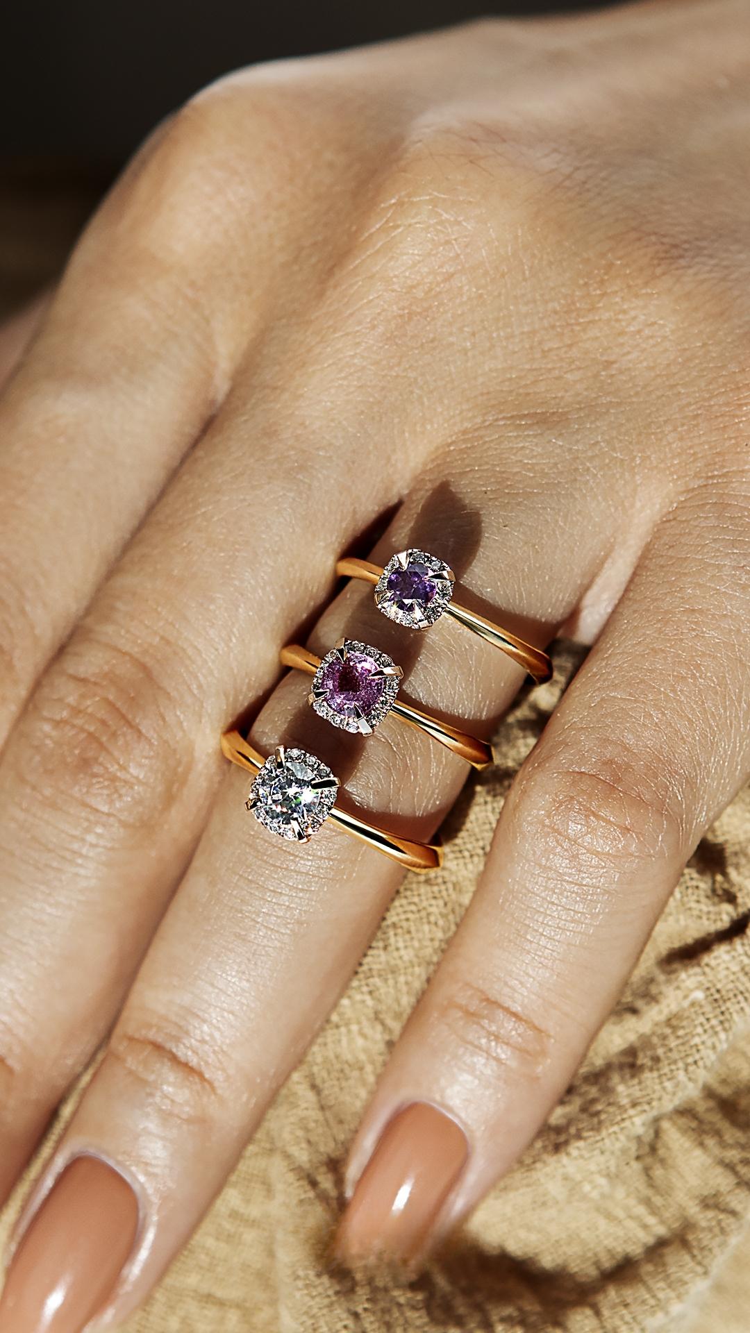 Idealny dla pewnej siebie, niezależnej osoby która wie, czego chce. Nie boi się podkreślać swojej indywidualności. Docenia piękno detali i potrafi łączyć elegancję z nowoczesnymi akcentami. Kamień centralny jest sercem tego pierścionka – czysty, pełen blasku, stanowi symbol doskonałości. Może to być diament, który podkreśla luksusowy charakter biżuterii, lub inny szlachetny kamień, jak szafir, rubin czy szmaragd, dla kobiety, która lubi wprowadzać do swojego stylu odrobinę koloru. Otaczające go mniejsze kamienie tworzą iskrzącą się aureolę, która sprawia, że pierścionek emanuje blaskiem z każdej strony, przyciągając spojrzenia i dodając właścicielce pewności siebie. Korona pierścionka, przypominająca kształtem delikatnie unoszący się balon, dodaje całości subtelności i lekkości.