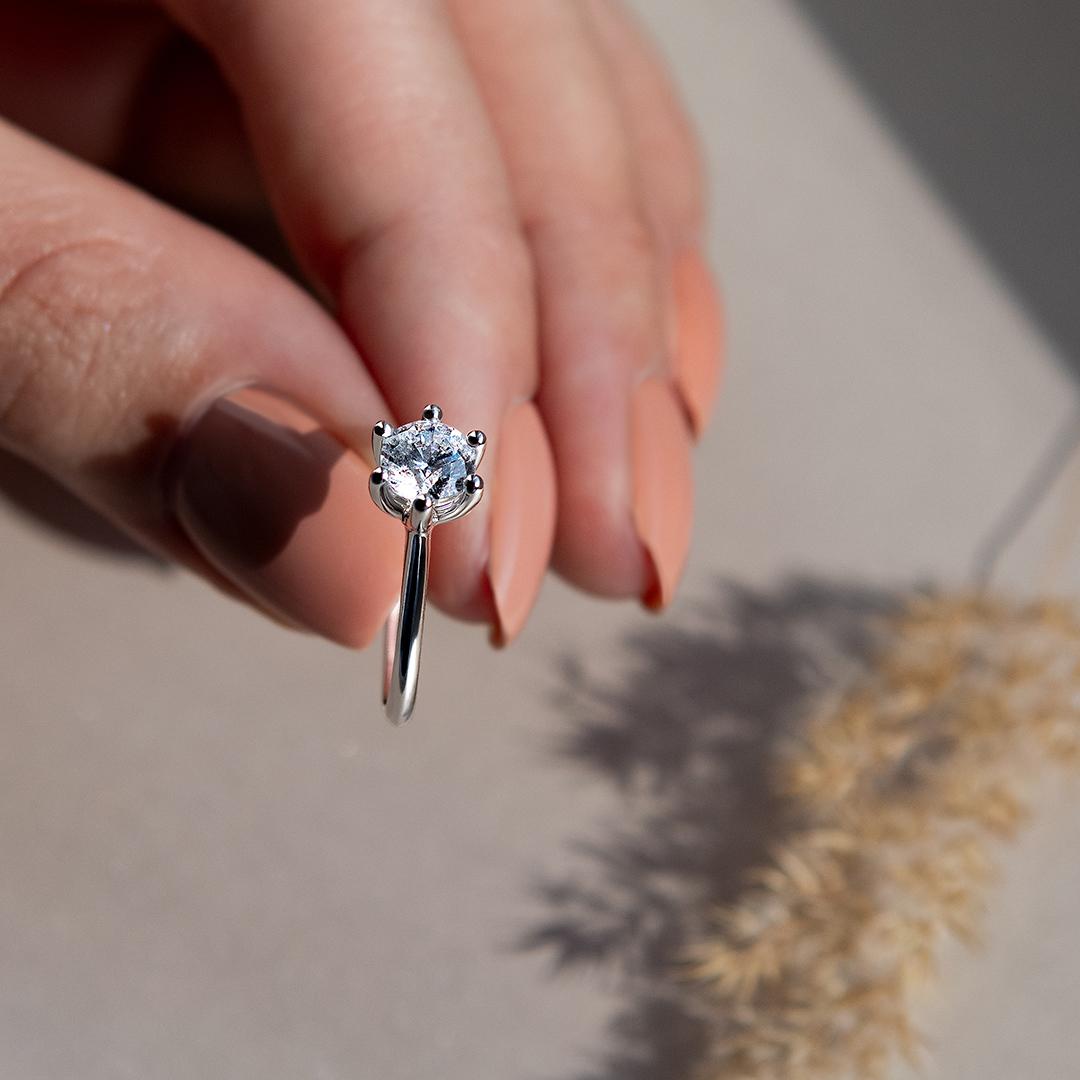 Perfekcyjny dla romantycznej i sentymentalnej osoby, która uwielbia wyrażać swoje uczucia poprzez, czułe gesty czy bliskość. Preferuje eleganckie, ale nieprzesadzone dodatki. W centrum tego niezwykłego pierścionka znajduje się pojedynczy, lśniący kamień, który stanowi serce całej kompozycji. Korona pierścionka jest arcydziełem jubilerskiej precyzji, w której sześć ramion jest subtelnie zaokrąglonych, co dodaje im miękkości i delikatności, a jednocześnie zapewnia solidne podtrzymanie dla głównego kamienia. Ich symetryczne rozmieszczenie tworzy efekt pełnej harmonii, który wzmacnia wrażenie, że kamień jest otoczony czułą opieką.