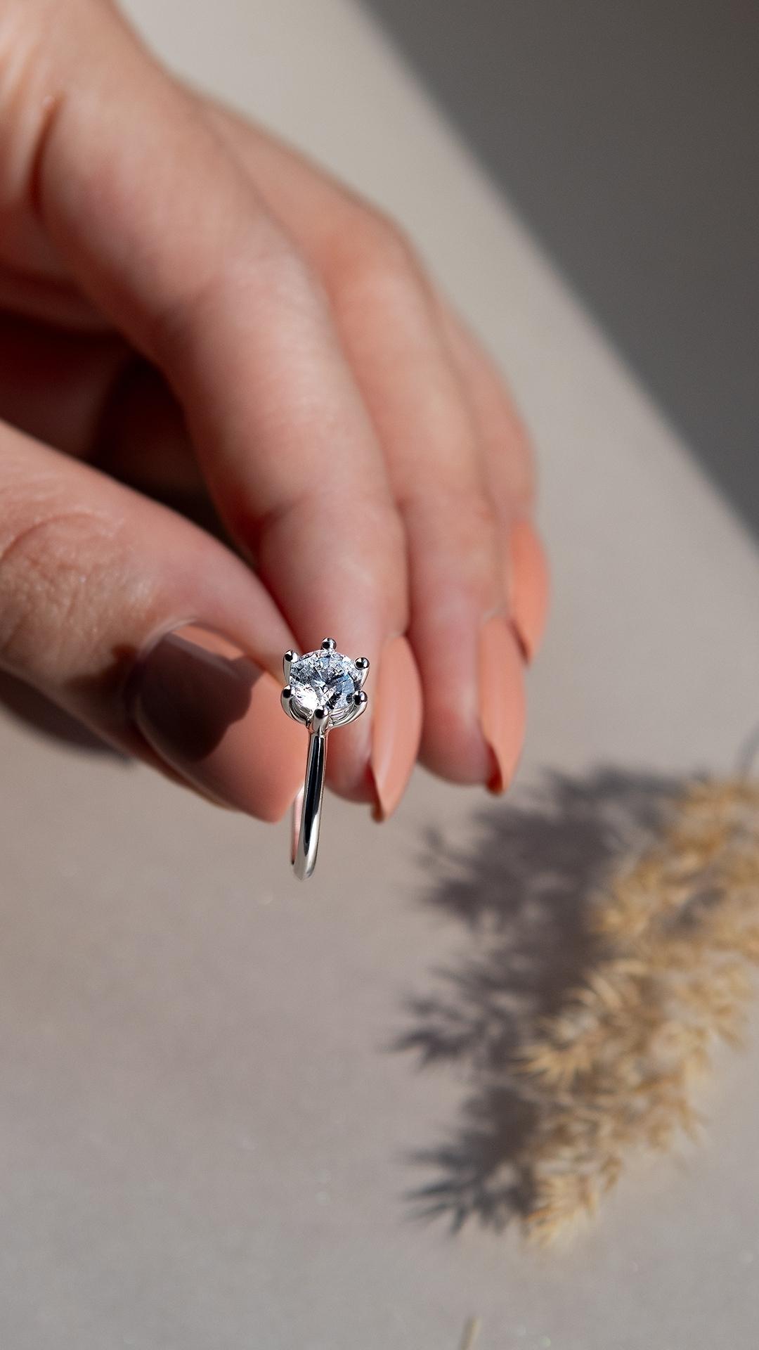 Perfekcyjny dla romantycznej i sentymentalnej osoby, która uwielbia wyrażać swoje uczucia poprzez, czułe gesty czy bliskość. Preferuje eleganckie, ale nieprzesadzone dodatki. W centrum tego niezwykłego pierścionka znajduje się pojedynczy, lśniący kamień, który stanowi serce całej kompozycji. Korona pierścionka jest arcydziełem jubilerskiej precyzji, w której sześć ramion jest subtelnie zaokrąglonych, co dodaje im miękkości i delikatności, a jednocześnie zapewnia solidne podtrzymanie dla głównego kamienia. Ich symetryczne rozmieszczenie tworzy efekt pełnej harmonii, który wzmacnia wrażenie, że kamień jest otoczony czułą opieką.