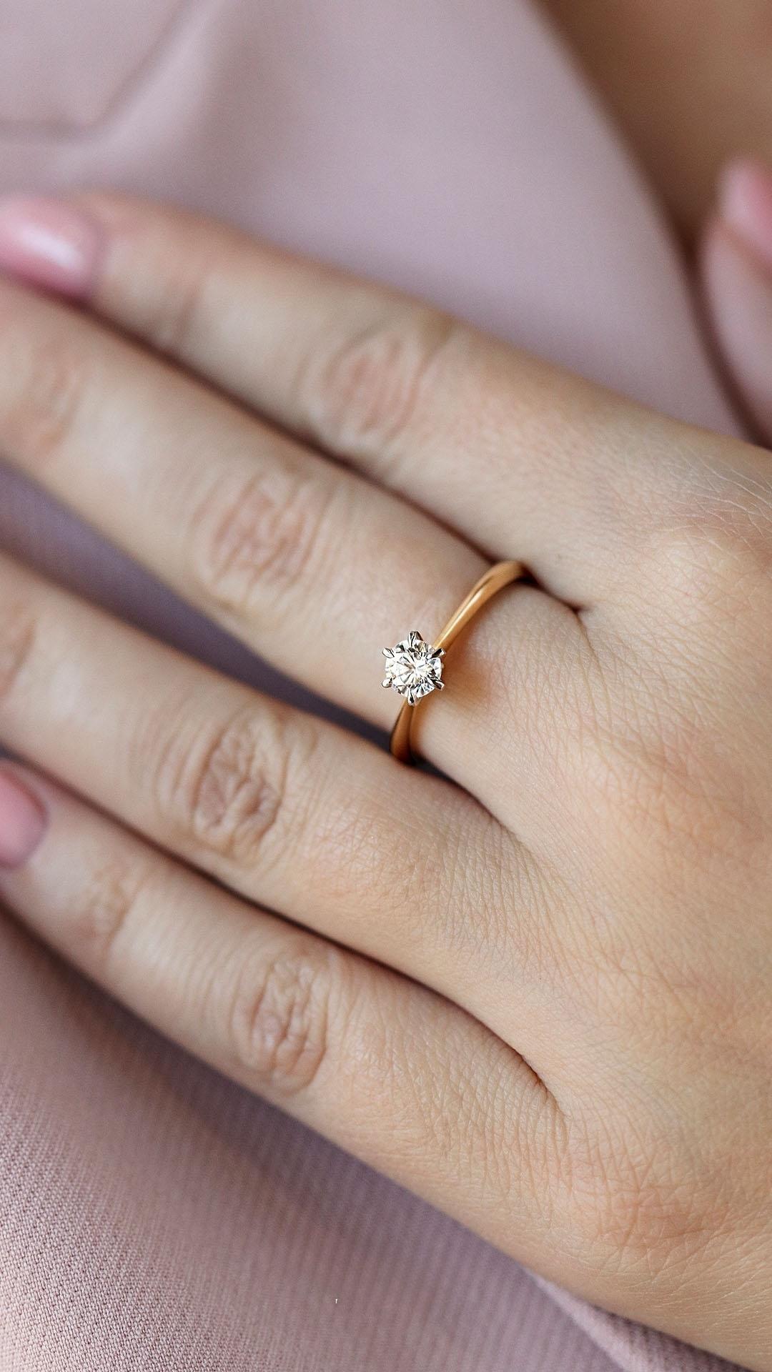 Pierścionek zaręczynowy z koroną, która unosi kamień, a smukła szyna zwęża się ku górze, tworząc elegancką i wygodną całość, doskonałą na każdą okazję.